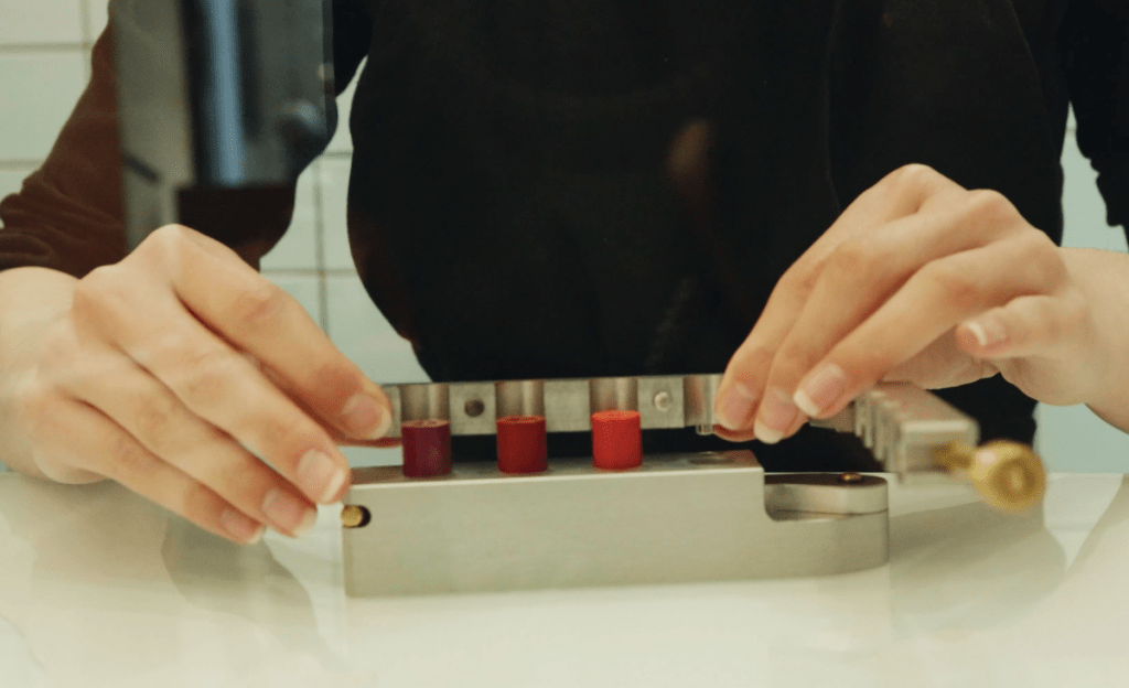 Le client essaie et on ajuste, on module la couleur jusqu’à satisfaction. On peut choisir aussi son format (traditionnel bâton ou liquide) et son fini : du mat au plus glossy. On propose également la possibilité de choisir un parfum à son RAL, c’est optionnel mais c’est assez sympa pour le côté sensoriel.