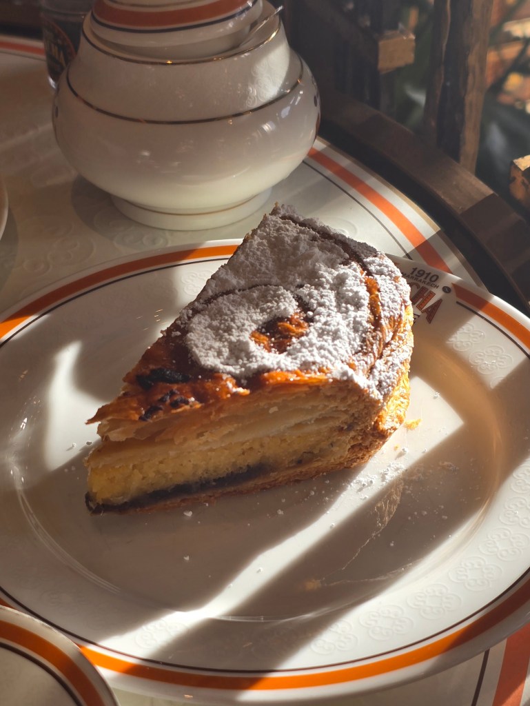 La Galette des Rois aux Amande classique : des couches beurrées et des amandes torréfiées (14 € la part / 48 € la galette entière).
